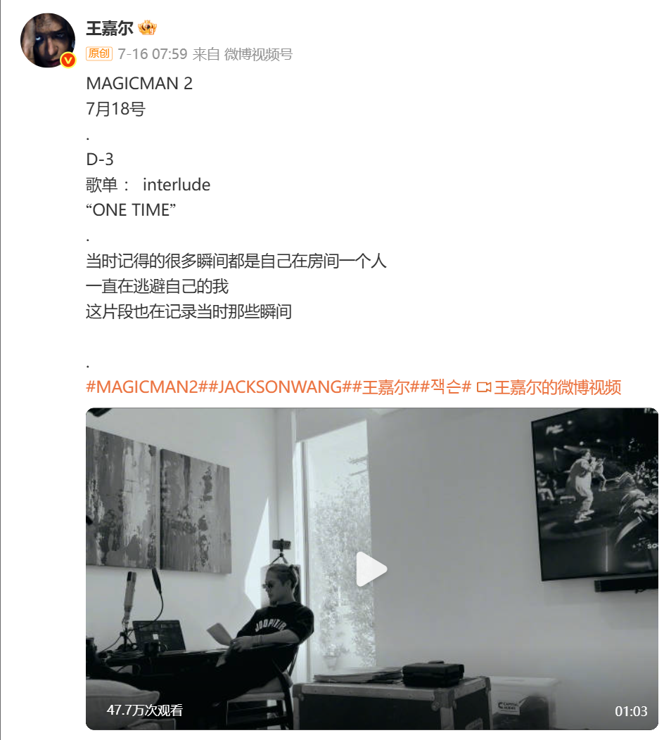 王嘉尔新专辑《MAGICMAN2》作为2022年《MAGIC MAN》的续作,延续“自我对话”主题,但更侧重真实人生经历的剖析。王嘉尔称这是“第一张真正为自己创作的专辑”,专辑共收录11首歌。为此,王嘉尔在微博上持续更新,为每首歌都发了预告视频。