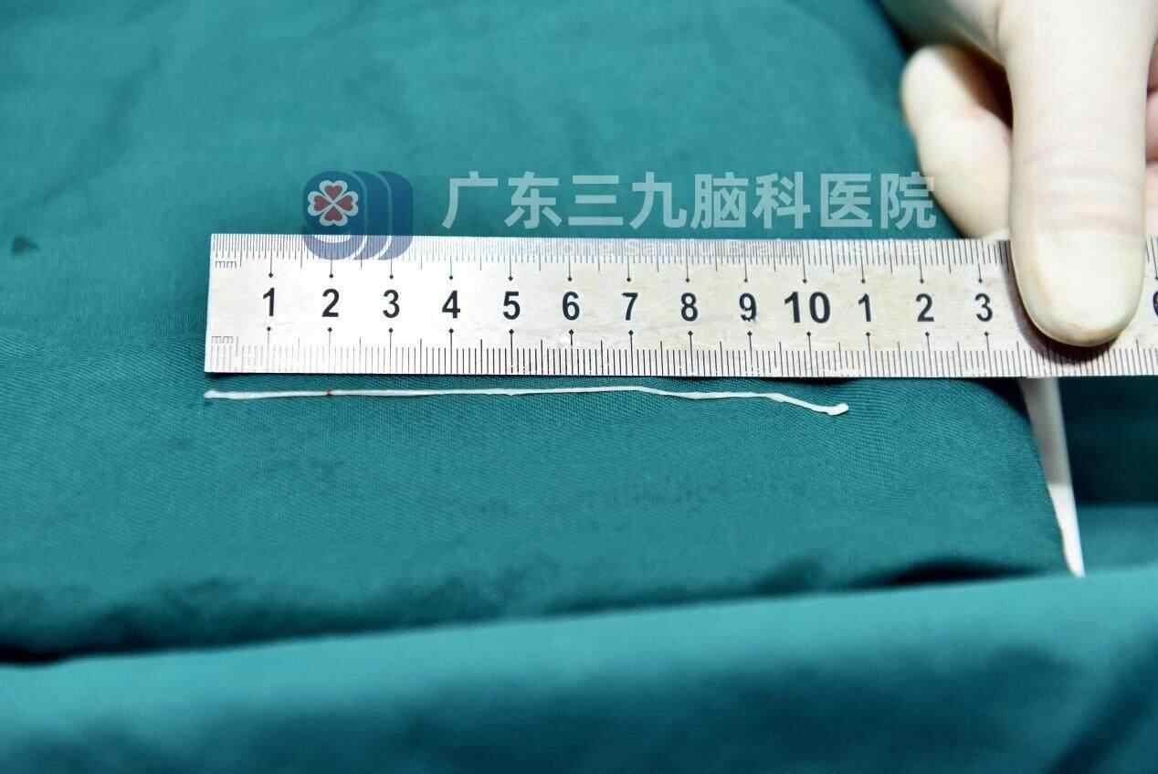 手术当天,医护团队先在全麻状态下完成开颅。当暴露病灶区域时,麻醉科医生逐步调整用药,将林浩从麻醉中唤醒,“能听见我说话吗?试着睁睁眼。”林浩根据指令吐舌、握拳、回答简单问题……通过实时互动,张旭标精准定位功能区边界,并成功捕获一条约10厘米长、仍在蠕动的裂头蚴。