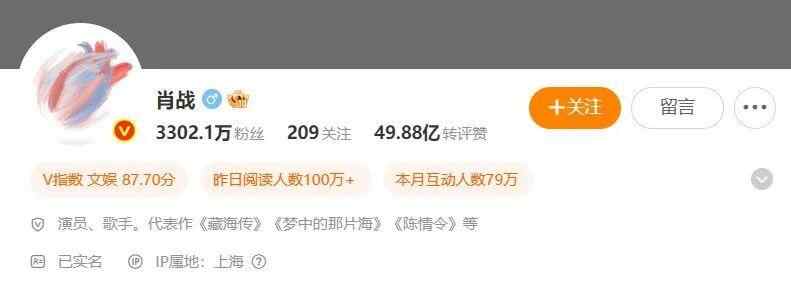 公开资料显示,肖战,1991年10月5日出生,中国内地男演员、歌手。代表作有《藏海传》《诛仙I》《斗罗大陆》《王牌部队》《余生,请多指教》《梦中的那片海》《射雕英雄传:侠之大者》等。