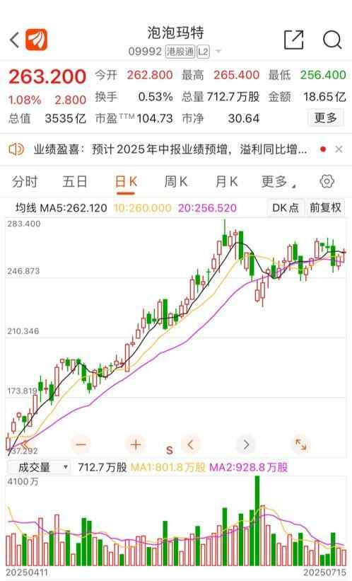 7月15日,泡泡玛特发布公告称,截至2025年6月30日的六个月,集团收入可能较去年同期收入增长不低于200%;预期溢利(不包括未完成统计的金融工具的公允价值变动损益)较集团去年同期溢利增长不低于350%。