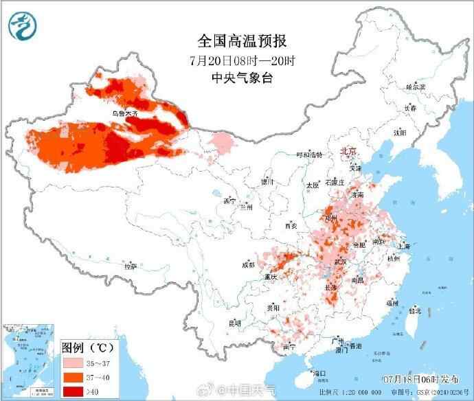 据中央气象台中期预报,预计7月20日前,华北中南部、黄淮、江汉、江淮、江南、华南及陕西关中、四川盆地等地还将有35℃以上高温天气,部分地区最高气温可达37~39℃,四川盆地局地超过40℃,高温强度较前期有所减弱,21日起高温天气将明显缓解。不过,24-26日,河北南部、陕西关中、四川盆地等地将再度出现阶段性35~37℃的高温天气。