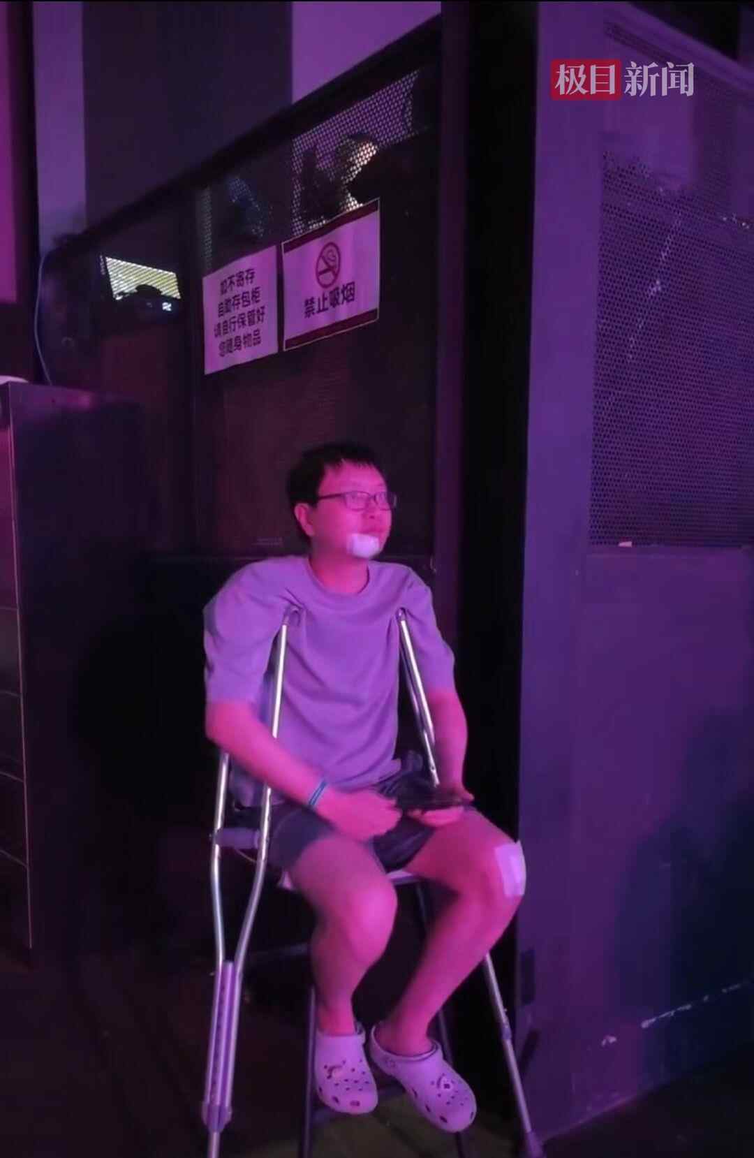 有粉丝拄着双拐来听庞麦郎演唱(极目新闻记者摄)