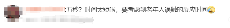 不过也有网友表示5秒的撤销时间太短:时间太短啦,要考虑到老年人误触的反应时间……