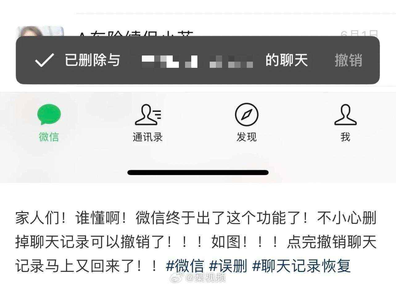 近日,有多名网友发帖称,发现微信聊天记录误删后可以撤销操作了。
