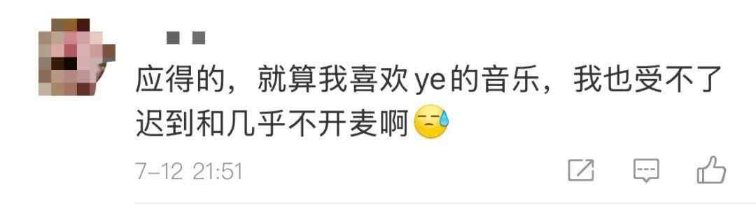 随后,侃爷不打招呼在大雨中提前退场,留下伴奏带硬控观众20分钟之后,就草草结束,再也没回来。