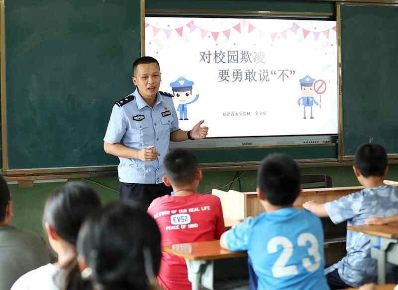 福建省永安监狱青年民警余文暖针对校园欺凌现象,为孩子们介绍欺凌种类、危害,提高日常防范意识,牢记《三不三要口诀》(三不:不怕、不激、不忍;三要:要智取、要求助、要团结),远离校园欺凌,保护青少年身心健康。