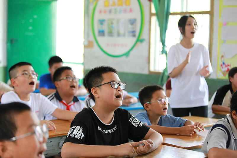 三明学院教育与音乐学院“一路阳光”教育关爱实践队的大学生志愿者发挥专业优势,结合罗坊中心小学师生实际情况,设计了丰富多彩的暑期支教内容,特别是通过美育教育提升他们的综合素养。图为音乐专业的大学生教唱《祖国不会忘记》,孩子们被歌曲背后的奋斗故事深深吸引,稚嫩童声唱响深沉爱国情。