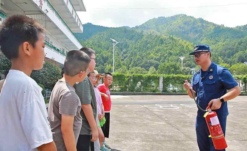 福建省永安市消防救援大队宣导员李思儒通过理论与实践相结合的方法,向孩子们介绍消防安全知识、灭火器的正确使用方法,以及逃生、疏散等实用技能,帮助他们提高安全意识,遇到火灾等突发情况能够掌握科学有效的消防知识。图为孩子们实地参加消防演练。