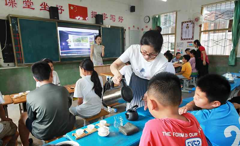 青年茶艺师郑舒琦向孩子们介绍茶叶种类,认识茶器,体验泡茶技艺,了解我国茶文化发展历史,和孩子一起在缕缕茶香中坚定文化自信。(光明网微光工作室 王恩慧 董腾飞)