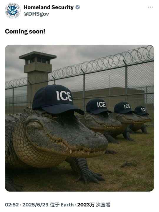 就在“鳄鱼恶魔岛”备受争议之际,美国国土安全部长诺姆12日表示,她正在与五个共和党领导的州进行谈判,以新建类似“鳄鱼恶魔岛”的设施。