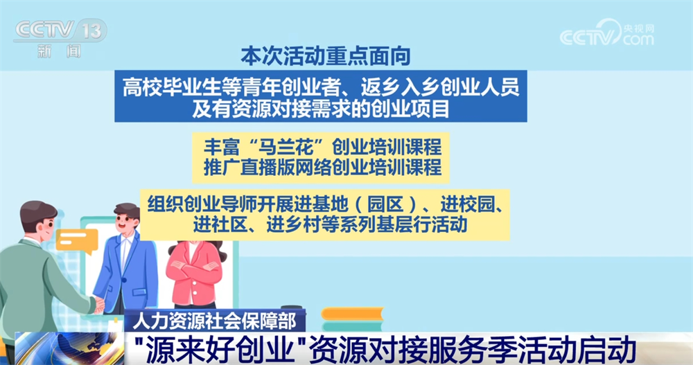 央视网消息:记者从人力资源社会保障部了解到,“源来好创业”资源对接服务季活动定于7月至9月在全国各地同步开展,通过搭建平台、拓展渠道、集聚资源促进高质量创业。