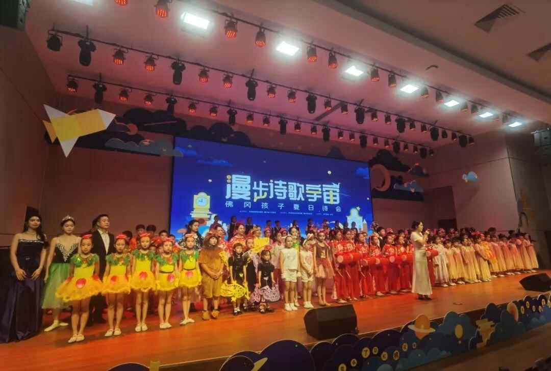 下午,佛冈一中,“漫步诗歌宇宙——佛冈孩子夏日诗会”隆重举行。最后是大合影,所有演员和嘉宾都上了舞台,一如春晚结束后的大团圆,热烈,喜庆。大家为此事筹备许久,辛苦了。
