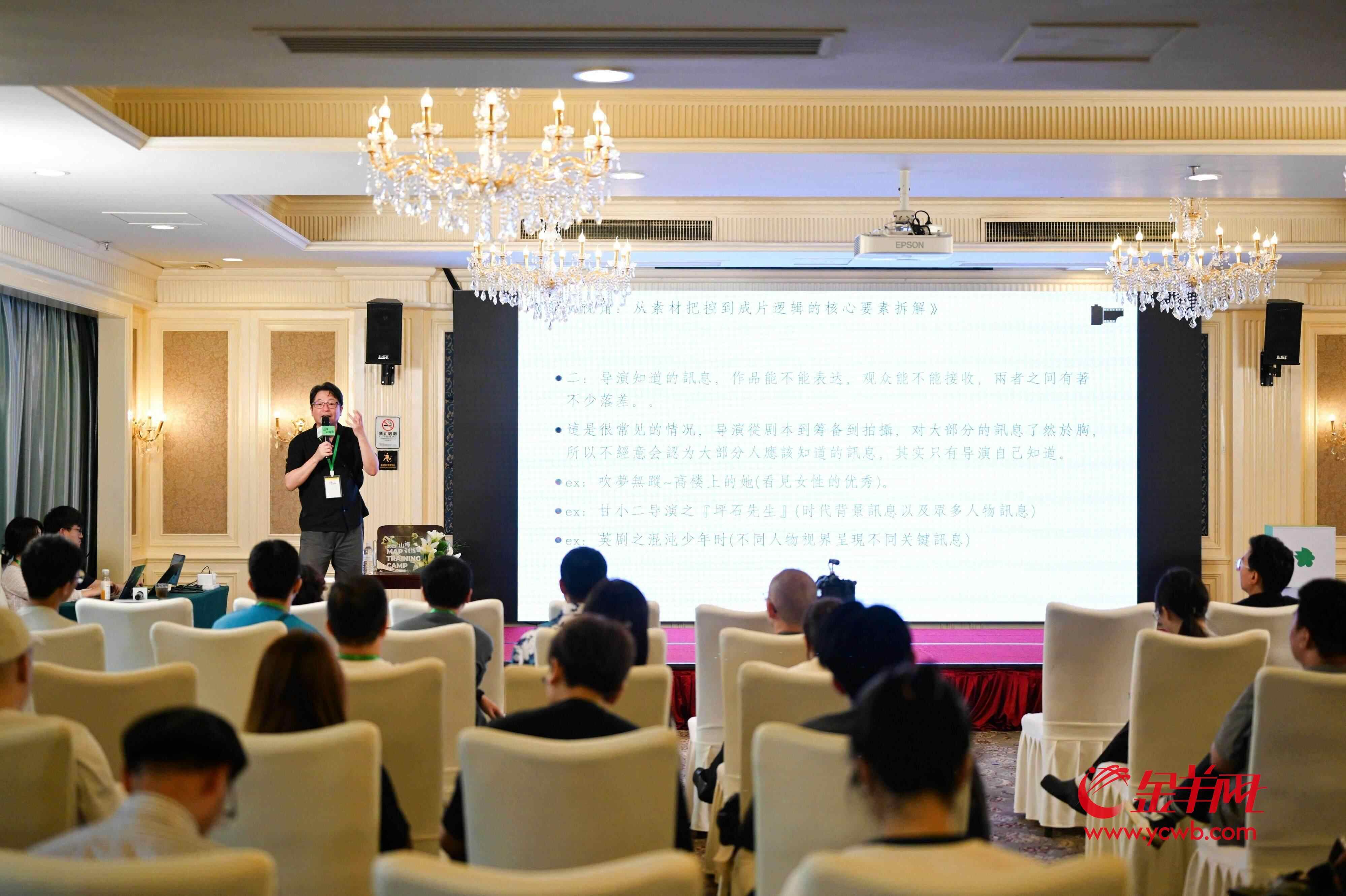 由羊城晚报报业集团主办的山海训练营正在广州中旅·阿那亚·九龙湖举行。7月13日下午,资深剪辑师萧汝冠带来公开课《剪辑视角:从素材把控到成片逻辑的核心要素拆解》,分享了他与侯孝贤、杨德昌、陈为军等不同风格的导演合作的幕后故事,为从业者提供了宝贵的创作启示。
