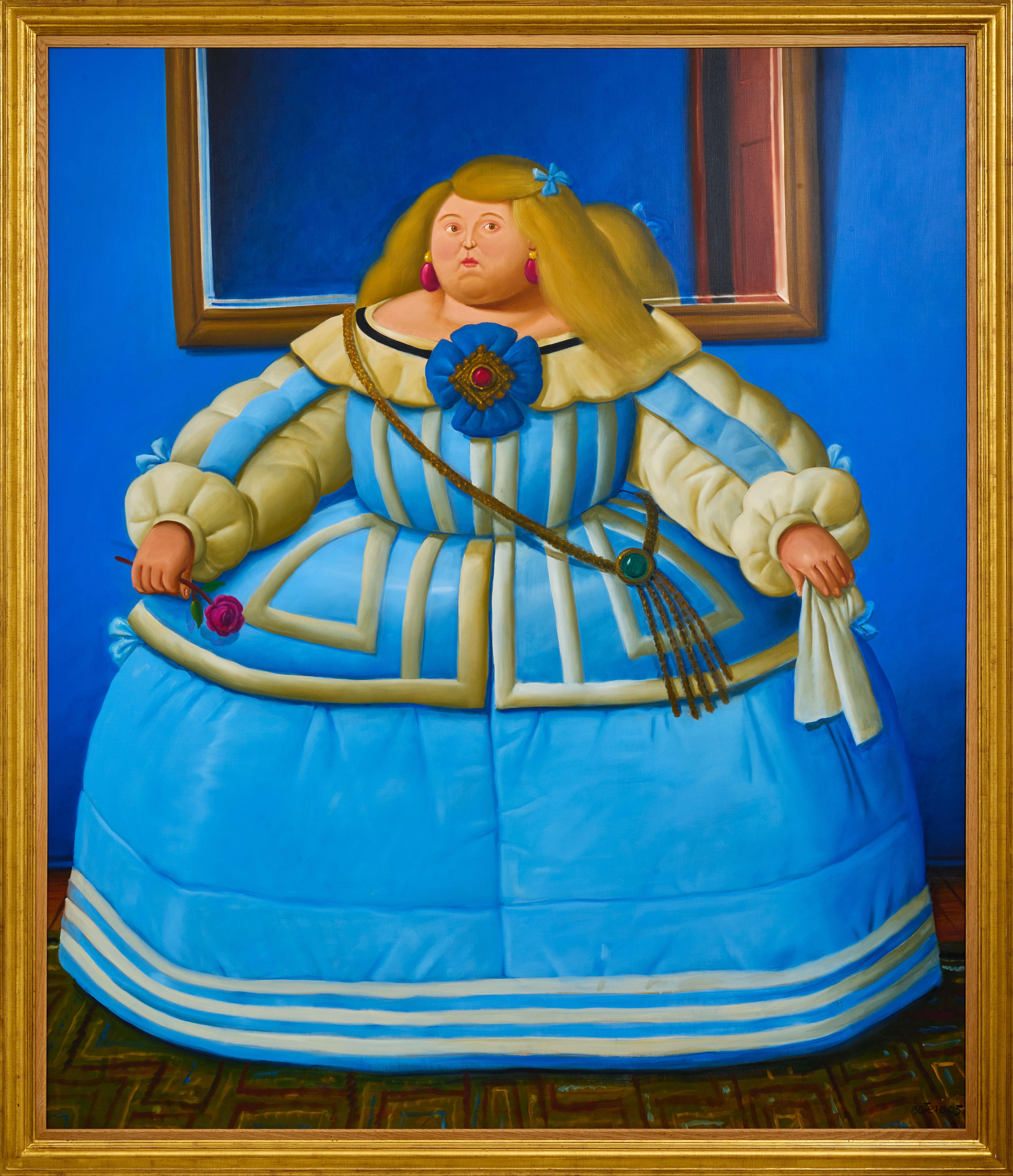 博特罗大受欢迎的作品中还包括一些以其个人风格“临摹”古典名作的作品,如此次展出的《委拉斯凯兹〈玛格丽特公主像〉再创作》《仿拉斐尔〈福尔纳里娜〉》等,不同于写实翻版,画中所有物体都被成倍放大,容易让观众联想到“肥胖”一词。