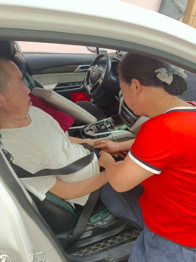 今年3月开始,王杰正式注册成为了网约车司机,而丈夫则成了一直陪伴她的乘客,为了让丈夫坐得舒服些,王杰特地加装了靠枕,还在座位上放了两个抱枕用以支撑手臂。