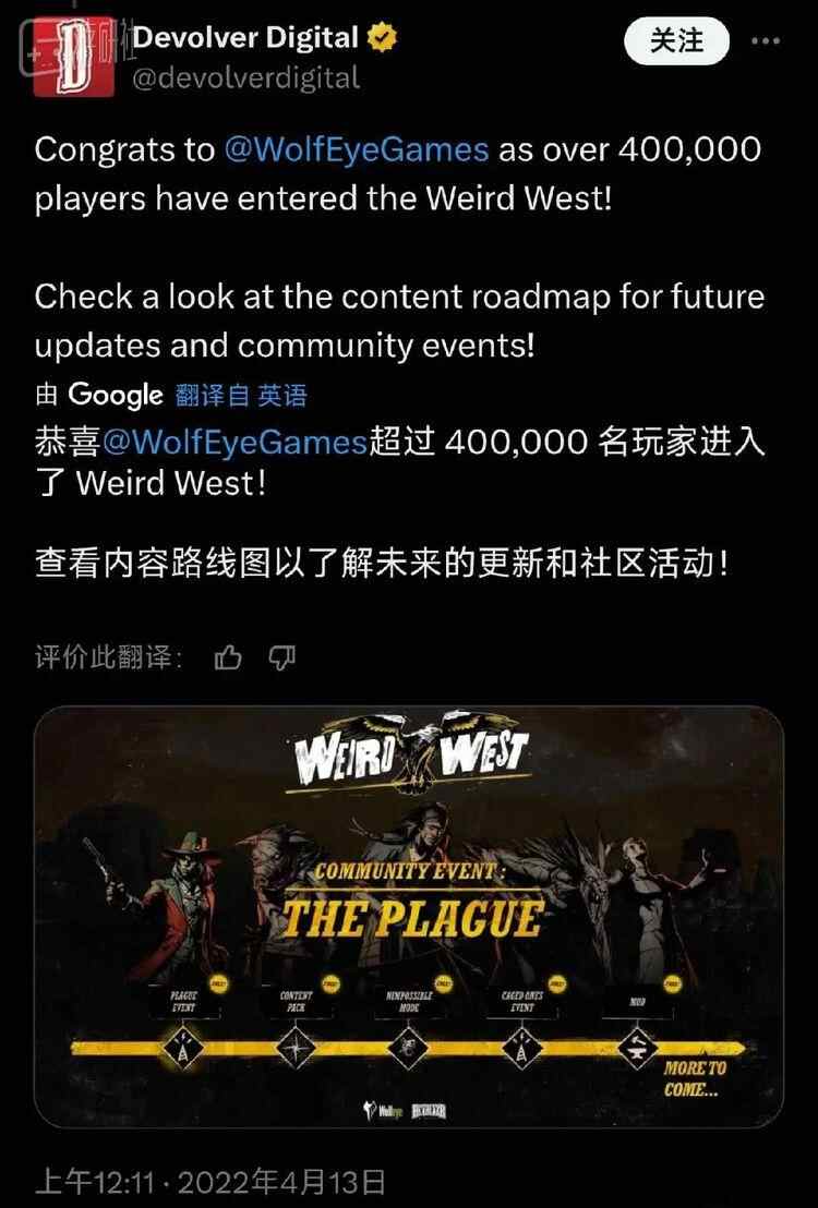 这也在一定程度上解释了拉斐尔对于XGP的不满:在离开Arkane后,拉斐尔创立了WolfEye工作室,并在2022年发售了俯视角ARPG《诡野西部》,游戏上线两周后玩家总数就突破40万,是个十分可喜的数字。但在半年后的采访时,拉斐尔却有些愁眉苦脸,他提到工作室尚未收回成本:玩家人数大头都在XGP上,但根据协议,微软只给了他们一笔固定的“发行费”。