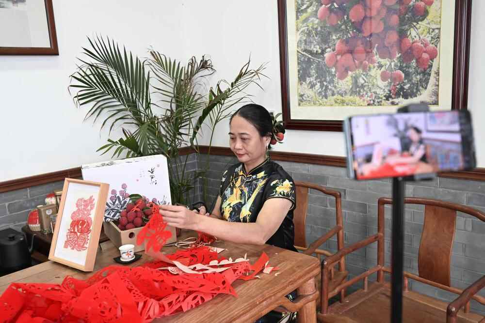 何丹凤,增城剪纸非遗传承人,用她那双灵巧的手,在纸上剪出荔枝的形态,每一剪都剪出了生活的艺术与美好。