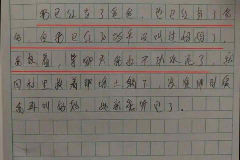 聊天时,安大爷一直在介绍他的家乡,后面又聊到了他的家庭,聊了许久,他才又拿起笔,写完了这篇作文。文章由大爷独立完成,他们只在聊天时帮忙引导大爷回忆。
