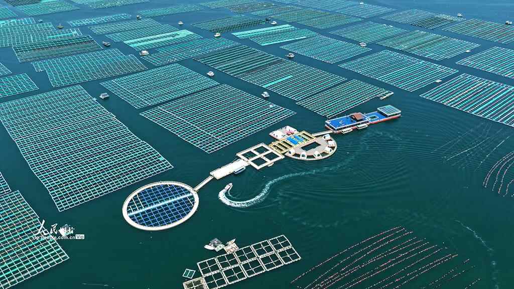 2025年7月11日,游客乘坐游船在山东省荣成市桑沟湾海洋牧场饱览海上美丽风光、体验生态养殖,乐享夏日美好时光。