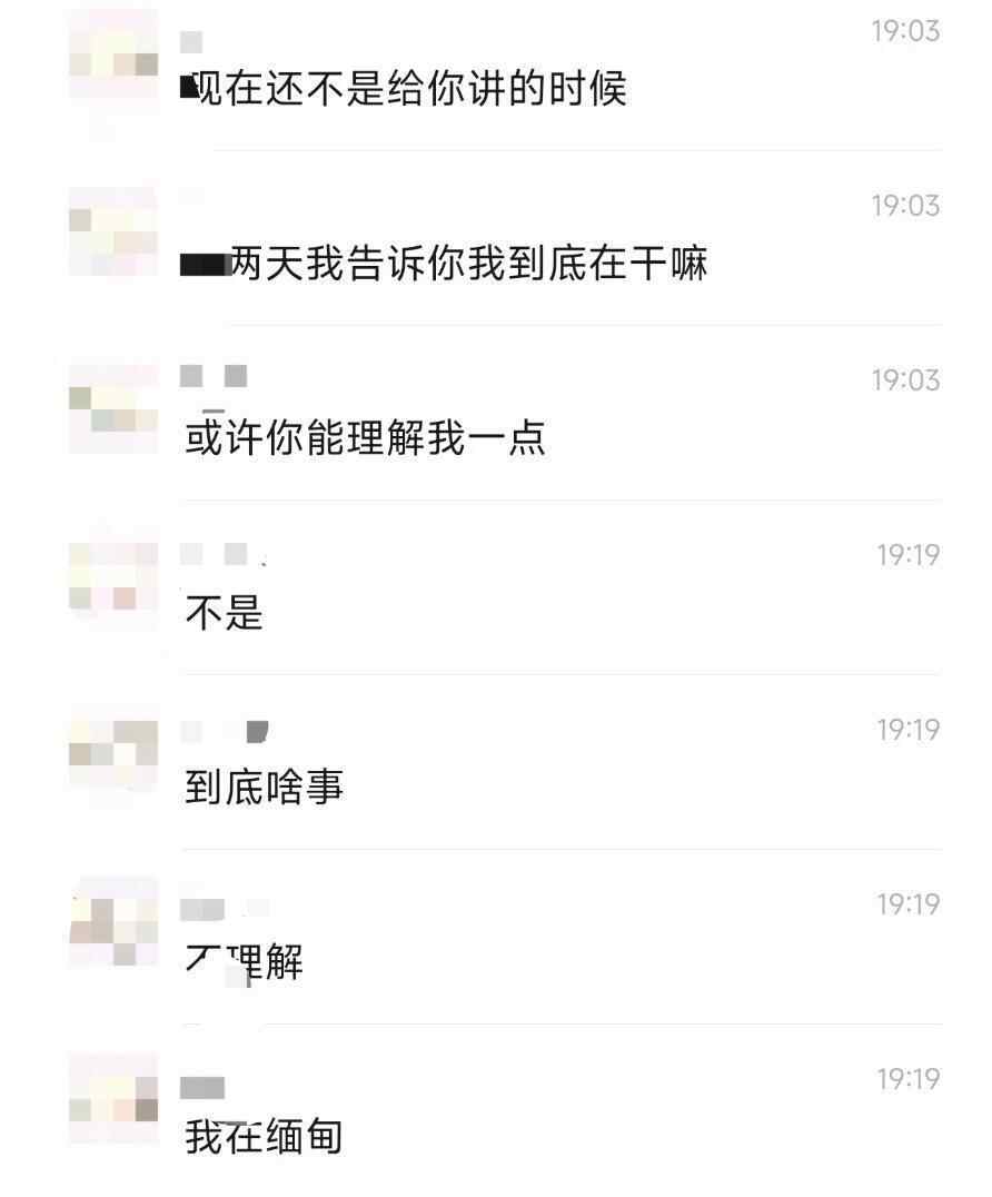 杨女士从儿子的女友那里得到消息,“他给她女友发了四个字,我在缅甸。”之后还跟女友讲,自己的人身是安全的,没有人控制他。当女友给她发缅北电诈相关新闻时,彭宇轩还表示,自己没有遭遇电诈。