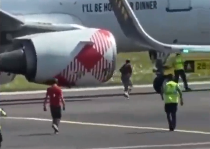 男子摆脱边防警察的追捕撞上一个引擎,接着穿过飞机底部扑向另一个引擎进气口。随后男子被弹回地面当场死亡,警方消息人士称该男子有吸毒史。当地检察院以煽动自杀罪对此事立案调查。