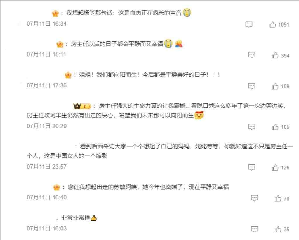 不少网友称:“房主任强大的生命力真的让我震撼”“看脱口秀这么多年了第一次边哭边笑”“10分钟很短但这是她30年的痛苦”。