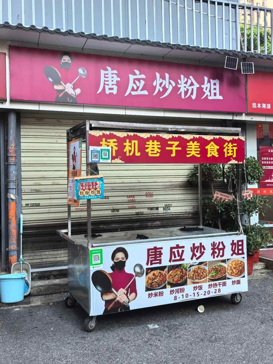 “我老公学美发一直学不会,我就让他做点小生意,这才开始炒粉。”唐应说,她那时带着两个孩子,白天做美甲、美发,晚上到地摊上帮老公炒粉。2022年左右,她突然因精致的穿着打扮火了,来吃炒粉的人蜂拥而至,老公每天马不停蹄地炒9个小时,她决定把美甲店关了,全身心炒粉。