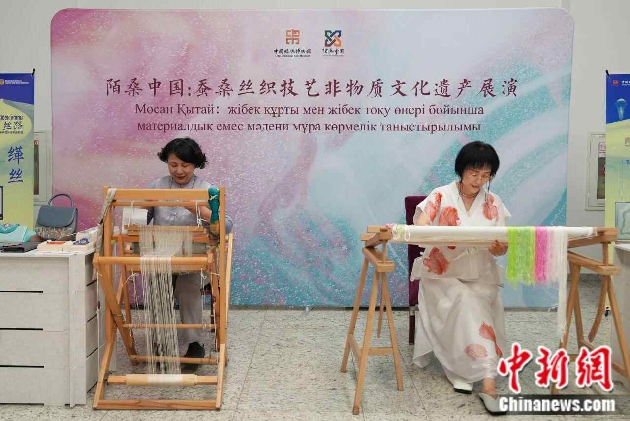 当地时间2025年6月16日,哈萨克斯坦“中国旅游年”开幕式在位于阿斯塔纳的哈萨克斯坦国家博物馆举行。图为手工艺者在非遗体验活动中演示缂丝、台绣等传统技艺。 中新社记者 单璐 摄