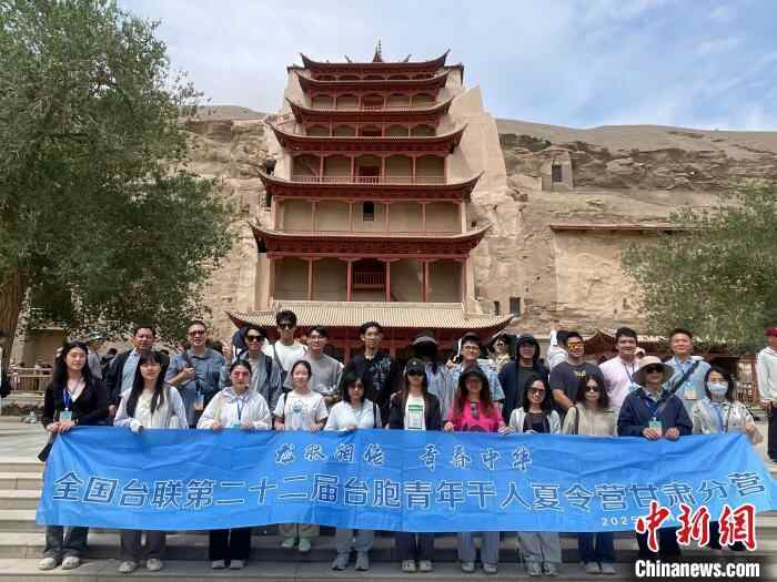 7月9日,全国台联第二十二届台胞青年千人夏令营甘肃分营营员在敦煌莫高窟合影。 申志波 摄