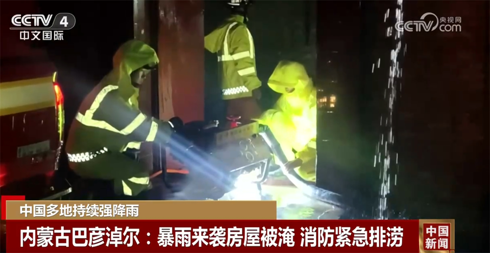 内蒙古巴彦淖尔:暴雨来袭房屋被淹 消防紧急排涝