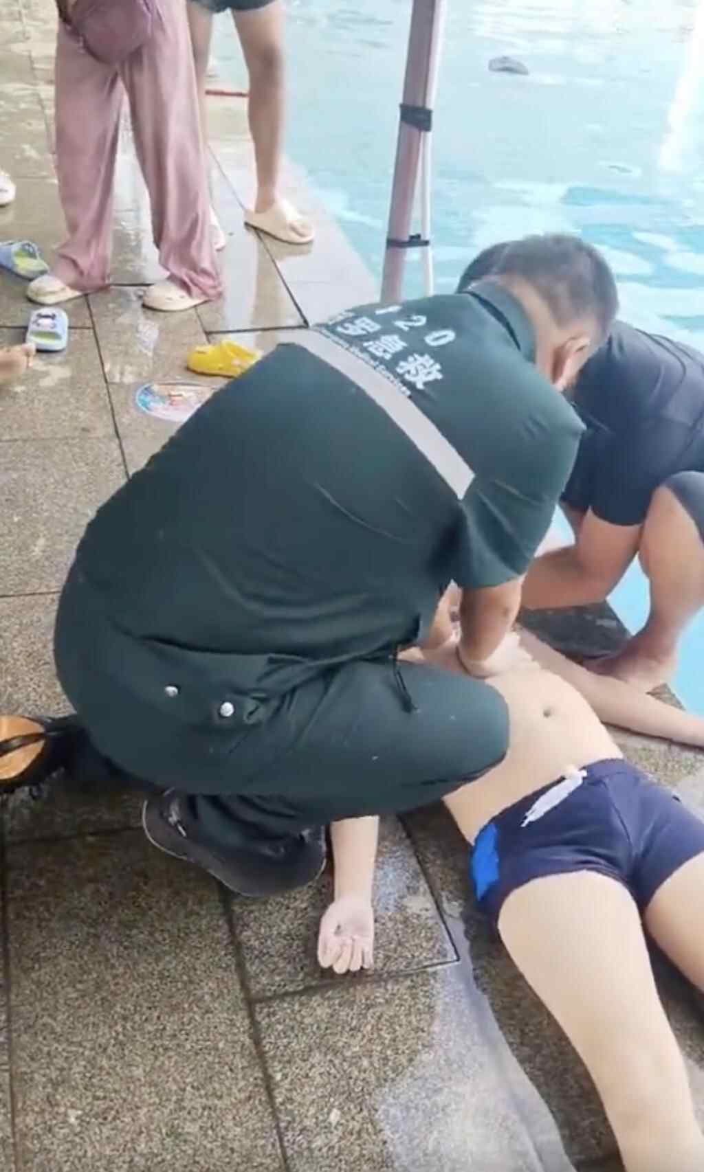 记者获得的一段事发视频显示,有两名少年在泳池旁倒地,有120急救人员对其按压施救。应急管理局相关工作人员表示,另一名少年因距离漏电区域较远,只是短暂昏迷。