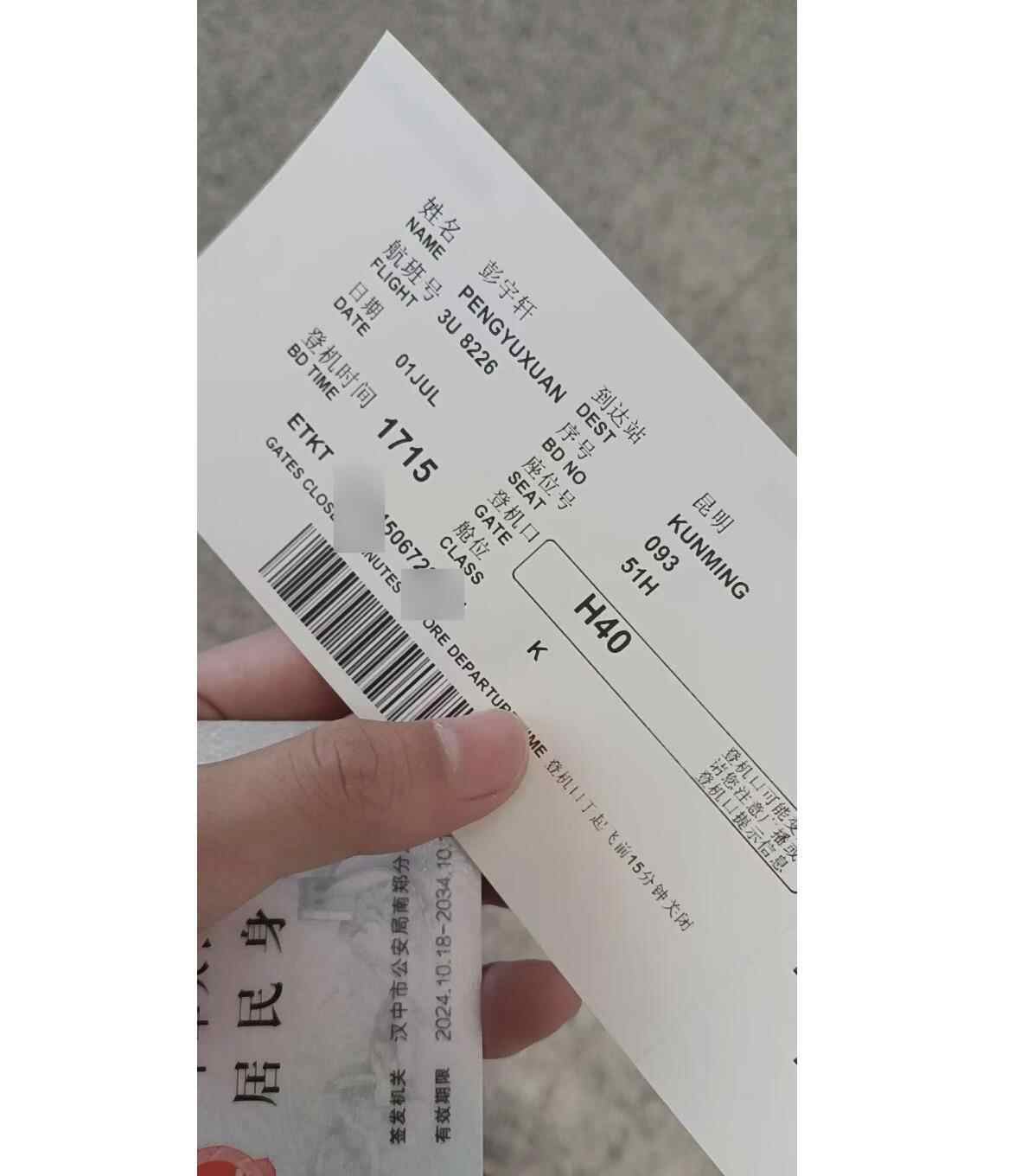 7月1日至4日中午,小佳和彭宇轩一直保持联系。记者从小佳与彭宇轩的微信聊天记录上看到,7月1日,彭宇轩给小佳发来当天下午5时15分前往昆明的航班登机牌,后于当晚8时许抵达昆明长水机场,并开心地称有人给了他500元住酒店。