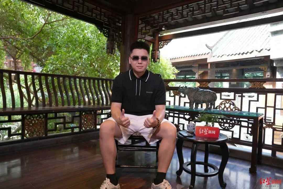 7月10日下午,在成都世纪城路附近一间茶楼内,揽佬接受记者面对面采访。他戴着标志性的墨镜,穿着POLO衫,对于《大展鸿图》爆红网络,他显得很淡定:“仅仅是运气好,时势造英雄。如果没有我,也会有其他人。”