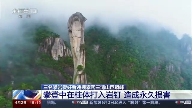 2017年发生在江西三清山的“巨蟒峰损毁案”,曾引发舆论广泛关注:张某明等三人相约携带电钻、岩钉等工具前往三清山,并在巨蟒峰危险处打下岩钉26个,最终成功攀爬至巨蟒峰顶部。后经专家认定,三人打岩钉攀爬行为对巨蟒峰造成了永久性的损害。