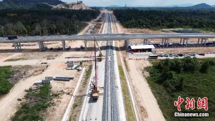 当地时间2024年5月9日,马来西亚东海岸铁路四电系统工程开工仪式在登嘉楼州举行。图为施工现场。(无人机照片) 中新社记者 陈悦 摄