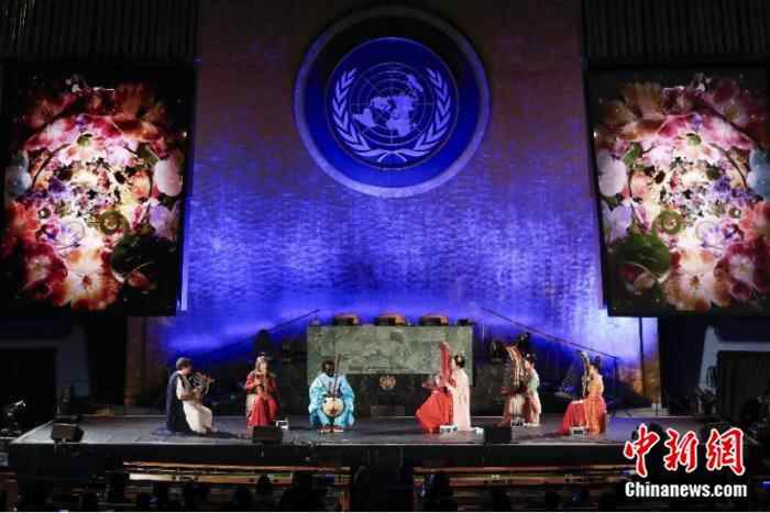 当地时间2025年6月9日,中国在纽约联合国总部举办“文明对话国际日”主题活动。图为来自中国、美国、希腊、塞内加尔的艺术家在“跨越山海的文明对话”文艺演出上表演器乐合奏《美美与共》。 中新社记者 廖攀 摄