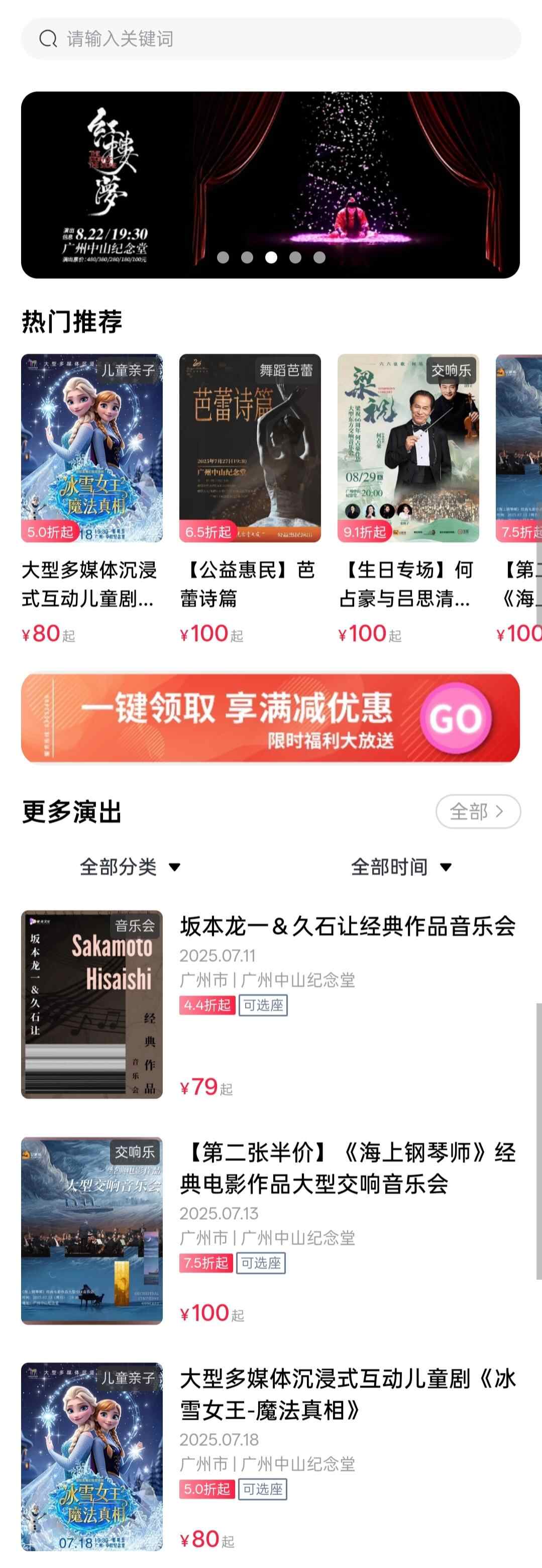 即日起,市民游客无需再登录公众号,只需指尖轻点微信小程序搜索“中山纪念堂票务”即可轻松完成演出查询、选座购票、订单管理等全部流程,享受更高效、更便捷的票务服务。