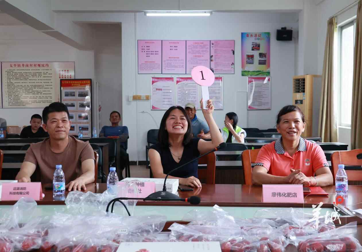 56户村民精选自家10颗“荔王”争霸“重量冠军”,最重的达409克(约1斤6两)。经过激烈竞拍,56户村民的560颗“荔王”共拍得4250元。值得一提的是,所得款项将转入井岗村公账,用于村内道路修缮、改善村容村貌等民生工程。