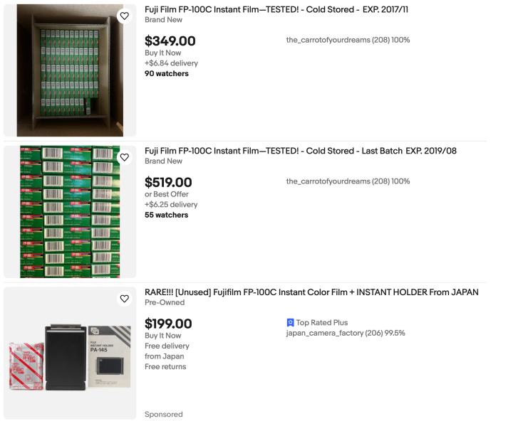 在国外的购物网站上,这款彩色的撕拉片价格也非常高。有效期到2019年8月的相纸,卖到了519美金一盒,按5月10日的汇率换算,大约是人民币3726元一盒。而保质期到2011年4月的,也卖到140美金。