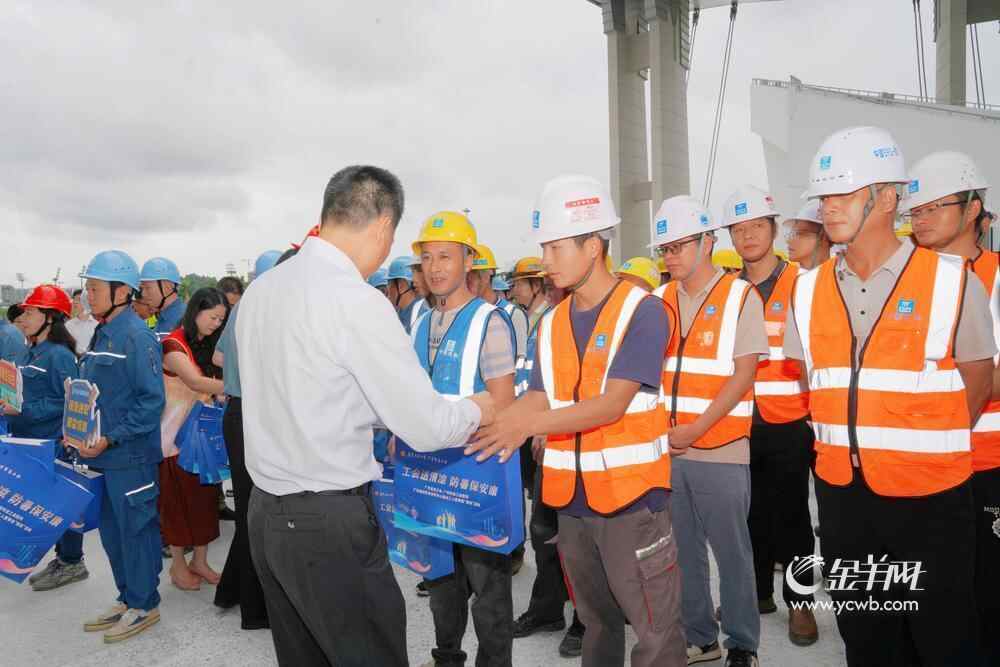 广东省总工会一行来到工地现场,精心准备了大量防暑降温物资,看望了正在忙碌的一线工人。慰问组与工友们亲切交流,详细询问他们的工作和生活情况,叮嘱大家注意防暑降温、劳逸结合。