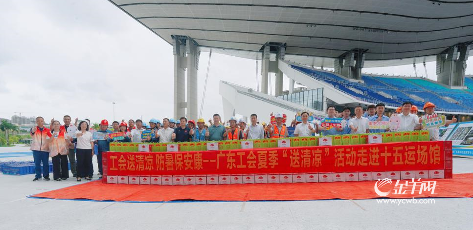7月11日,广东省总工会党组书记、常务副主席温文星,党组成员、副主席许平坚,广州市总工会党组副书记、常务副主席张哲一行来到奥体中心,为这些辛勤付出的一线工人开展送清凉慰问活动,将关怀与清凉送到他们手中,100余名一线工人参与本次活动。