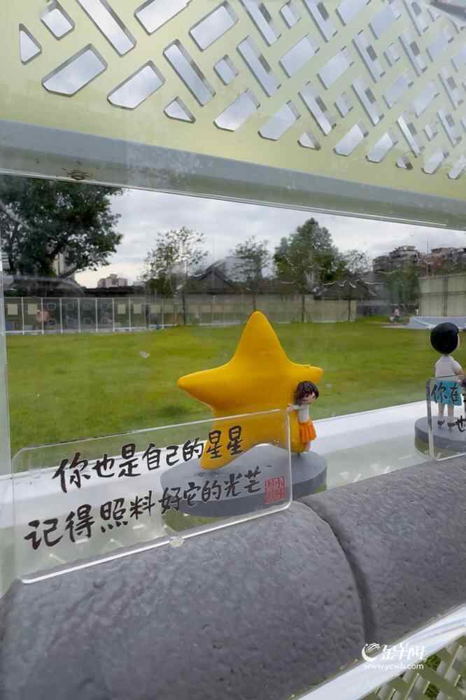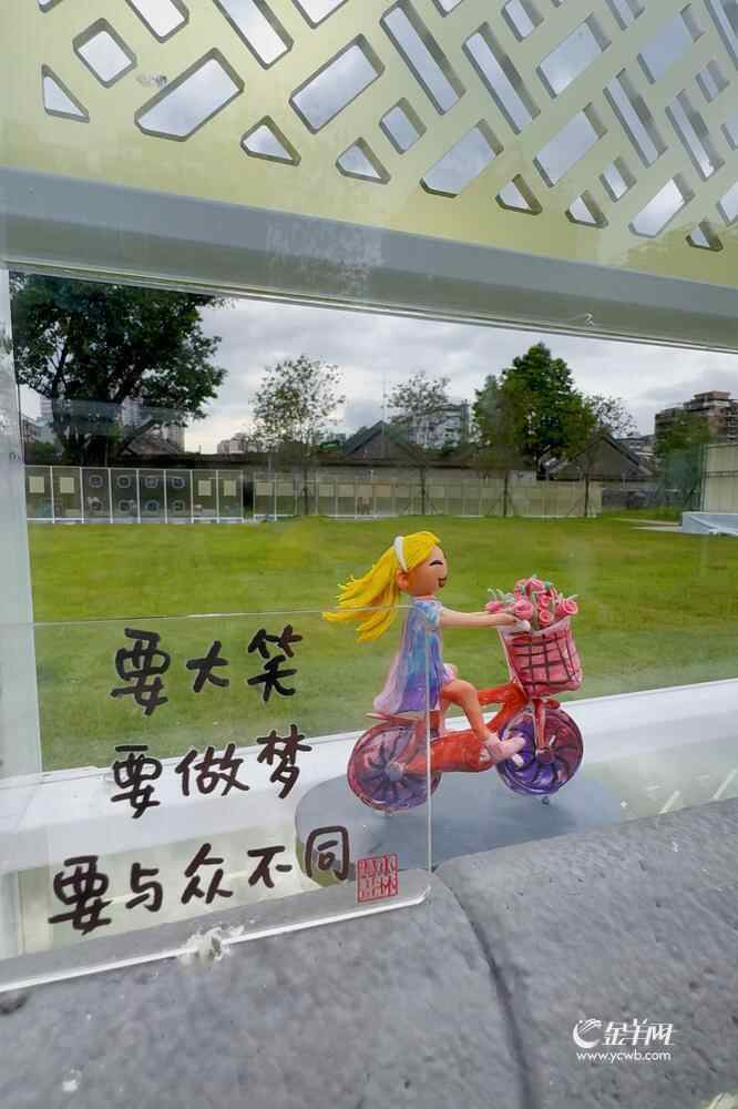 展览布设了立体装置,有向陈家祠彩塑和满洲窗致敬的微缩雕塑,还有采用了14256片彩绘片的“风动”装置,灵动地捕捉了风的形态,在光线下如万家灯火,又如波光粼粼的荔枝湾涌。