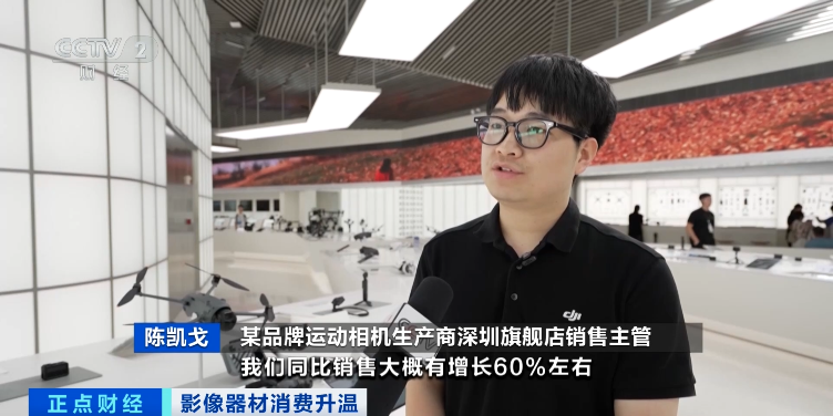 某品牌运动相机生产商门店销售主管陈凯戈:我们同比销售大概增长60%,有很多20多岁的年轻群体逐渐会选择我们。目前对于运动相机的增长还是持比较乐观的态度,因为现在运动的场景越来越丰富。