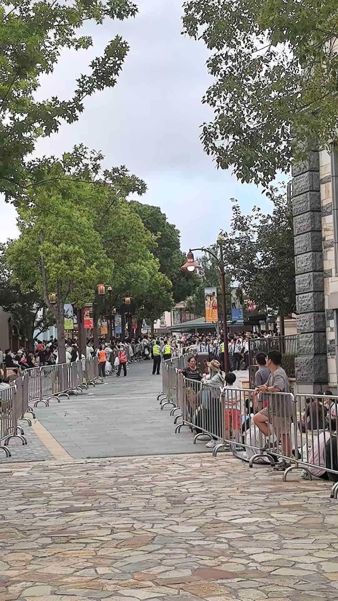 7月8日晚上,上海迪士尼乐园门口排起长队。受访者供图