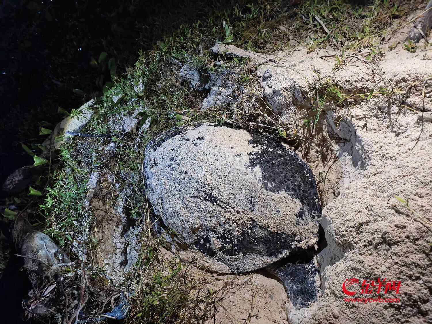 现场勘察资料显示,沙地上留有清晰的鳍状肢爬痕,延伸至海水边缘,显示出海龟登陆与返回海洋的完整路径。采集到的海龟蛋排列紧密,包裹在湿润的沙层中。上述发现为研究绿海龟的繁殖行为提供了珍贵素材。