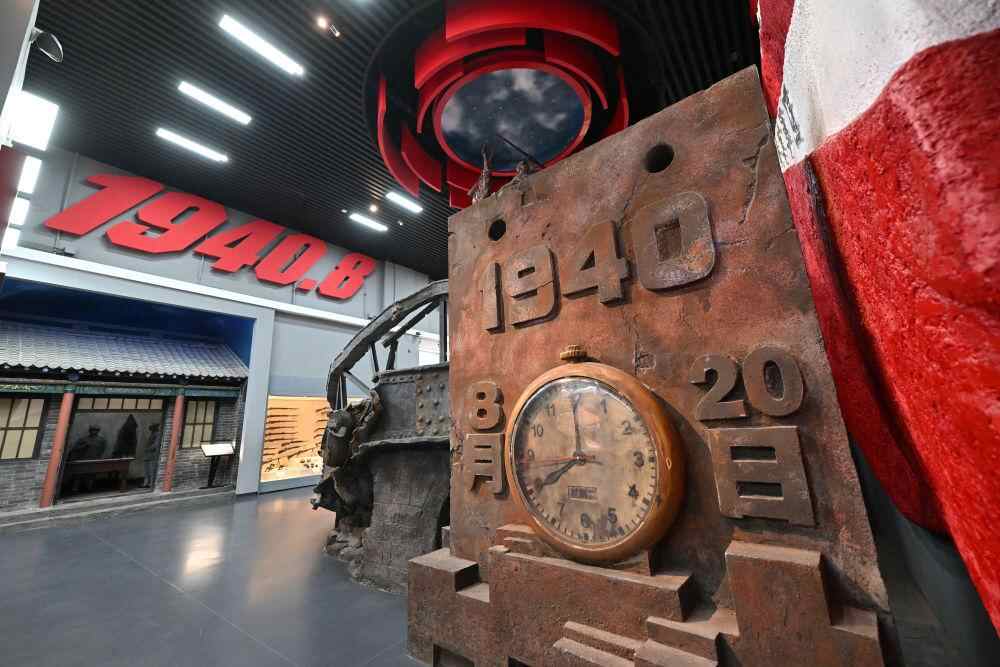 参观结束,习近平总书记来到纪念馆大厅,同青少年学生和纪念馆工作人员亲切交流。在他们身侧,“百团大战 光耀千秋”八个字熠熠生辉,一组以娘子关战斗、狮脑山战斗、正太铁路破袭战等为主题的群雕气势磅礴,再现了那段烽火连天的岁月。