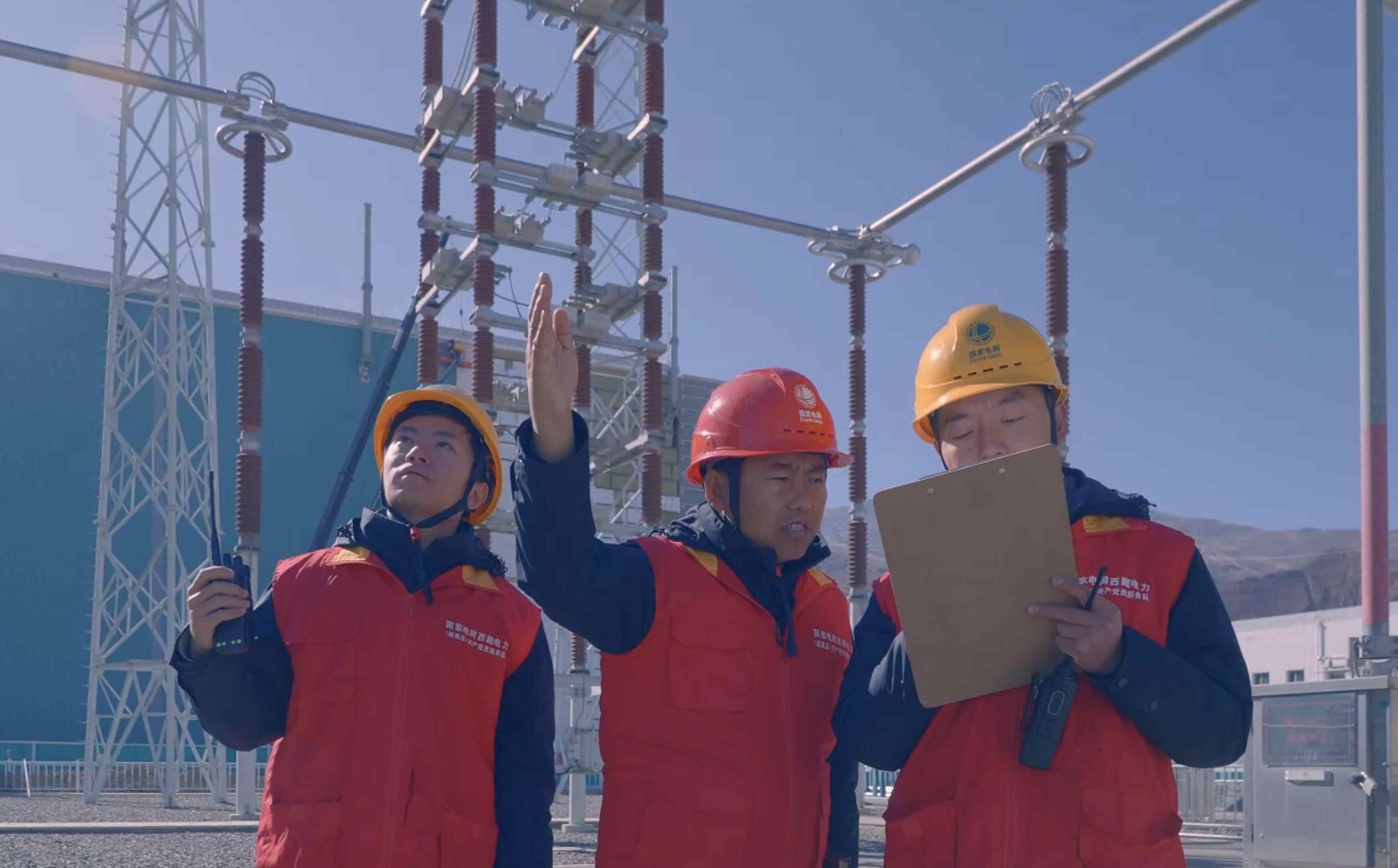 图为普布扎西奔波在施工现场(图中为普布扎西)。 调试阶段的72小时攻坚,是他与“电力天路”的初次交锋,也是一场与时间的赛跑。作为换流站的核心运维人员,他跟着厂家师傅爬高走低,嘴唇都被冻成深紫色,却还是死死盯着示波器上跳动的波形。“这个参数再调0.5个单位。”师傅话音未落,普布扎西已摸出笔记本记录。当持续工作了57个小时后,倦意如潮水般袭来。“这种时候,我会拍打自己的脸,甚至用力掐自己的大腿。”普布扎西摸了摸头羞涩地说道。就这样,他坚持了整整72个小时没有合眼,就是这股信念,支撑他在黎明前成功记录下关键波形数据,让设备参数最终定格在完美数值。