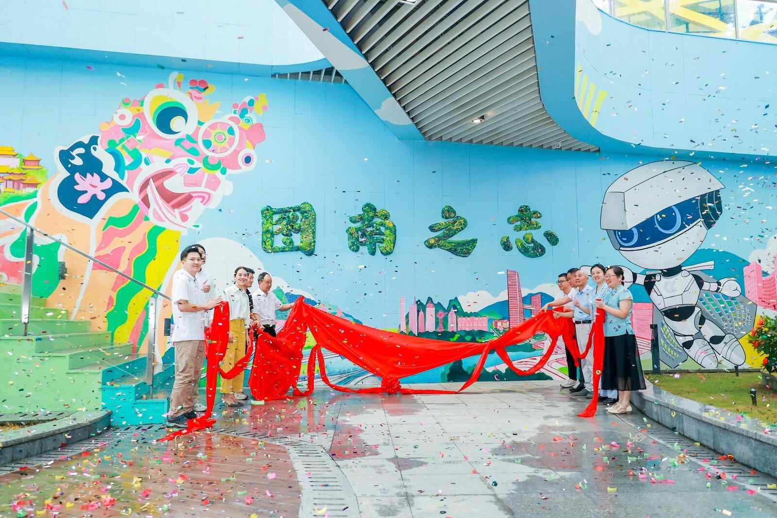 该墙绘选址负一楼下沉广场,其上方桥梁象征南沙作为湾区枢纽的连接作用。作品由嵌瓷艺术家、广州理工学院艺术设计学院特聘副教授陈旭南和他的团队策划设计,并邀请在南沙的00后港澳青年共创。启动仪式上,嘉宾读者放飞了书写个人志向的气球。