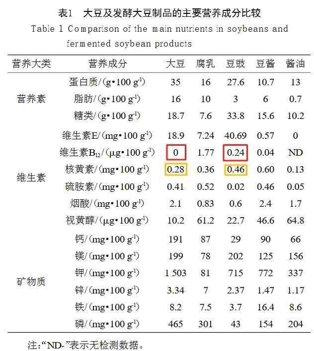 发酵过程中,微生物自身会合成大量的B族维生素,特别是维生素B2和维生素B12。根据一篇发表在《中国酿造》上的文献中的数据,豆豉的维生素B2含量是大豆的1.6倍,维生素B12由原来的0微克/100 克,增加到了0.24微克/100克。这对于以植物性食物为主的素食人群来说,是补充B族维生素的良好途径。