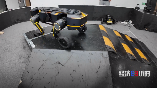 在另一家机器人企业里,一款迷你版轮足机器人甚至可以成为神奇的坐骑。它们可以跳着爬楼梯,可以半坡驻停,也可以轻松通过各种复杂地形。